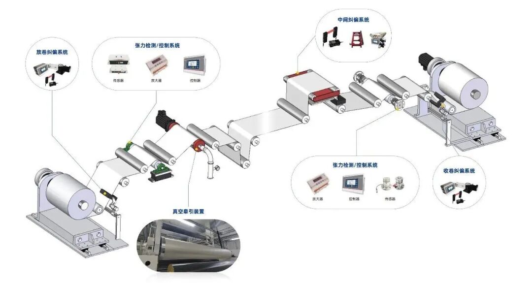 光子精密纠偏系统集成放卷、张力检测、真空牵引、中间纠偏与收卷等模块,形成完整闭环控制体系。
