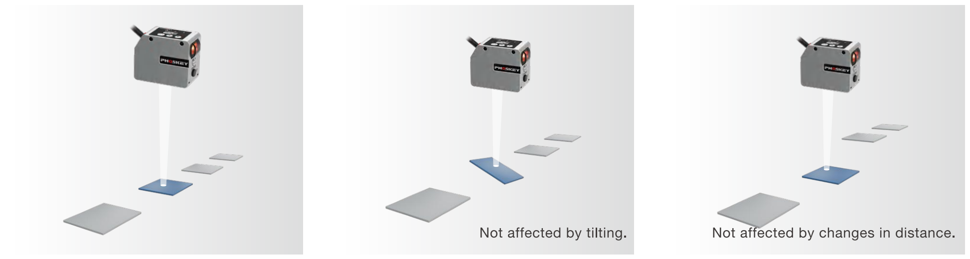The PW series features extremely high color detection accuracy and stablity, with detection results unaffected by changes inenvironmental conditions. The "white light spot" can reliably detect differences in the appearance color of the object, even whenthe object is tilted or the distance between the sensor and the object varies.