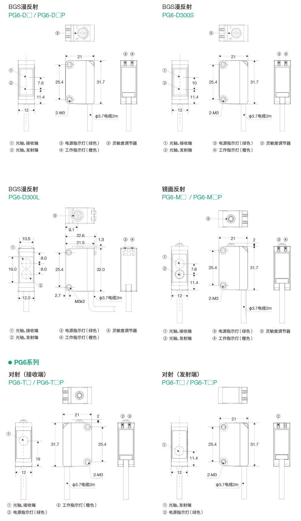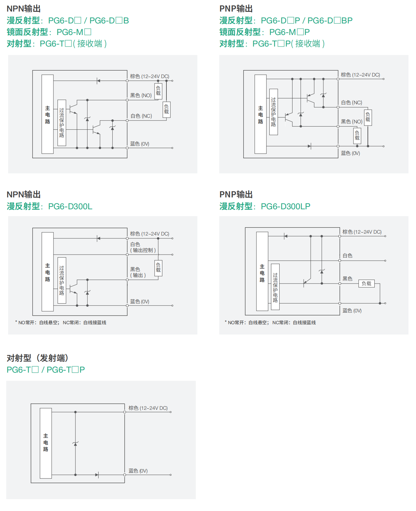 | PNP输出 | PG6-D100P | PG6-D300P | PG6-D500P | PG6-D900P | PG6-D300LP | PG6-D300BP | PG6-D125P | PG6-T15MP | PG6-M6MP | ||||||