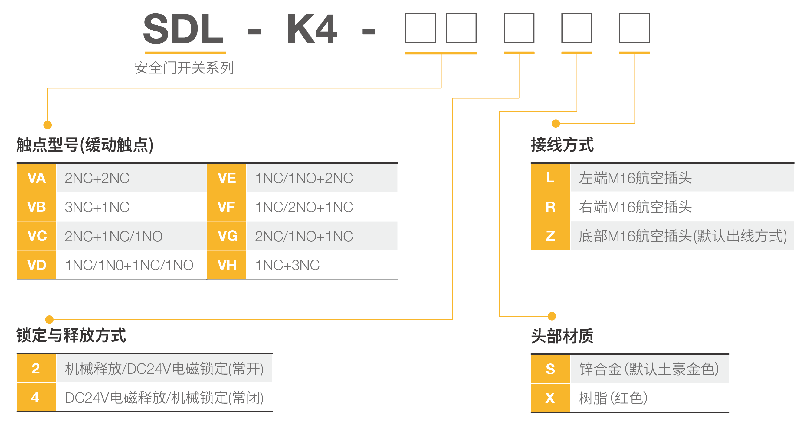 头部安装方向可调节(树脂与金属两种头部材质可选),门锁+钥匙+线缆,整套选型安装更便捷。
